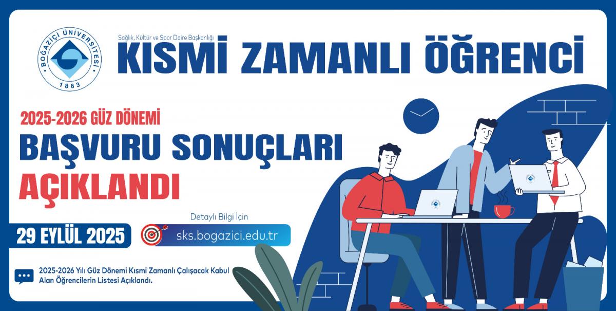 2025 Güz Dönemi "Yükseköğretim Kurumları Kısmi Zamanlı Öğrenci Çalıştırma Usul ve Esasları" uyarınca Kısmi Zamanlı Öğrenci olarak çalışmaya hak kazanan öğrencilerin başvuru sonuçları açıklanmıştır.